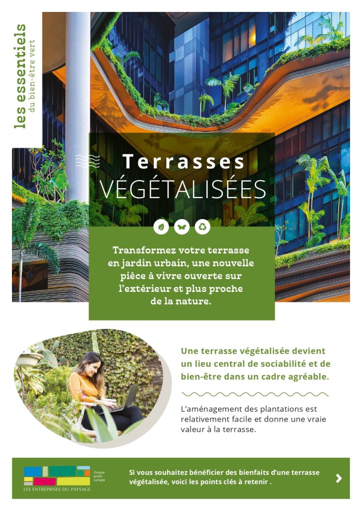 Pour présenter cette palette de métiers bien particuliers, les fiches client Les Essentiels, sont mises à disposition par l’Union Nationale des Entreprises du Paysage afin de servir d’outil promotionnel à destination des prospects. qui présentent plusieurs types d’aménagements végétalisés (murs, toitures, terrasses, intérieur, intérieur éphémère et évènementiel) ainsi que les raisons pour lesquelles l’expertise des professionnels est nécessaire.