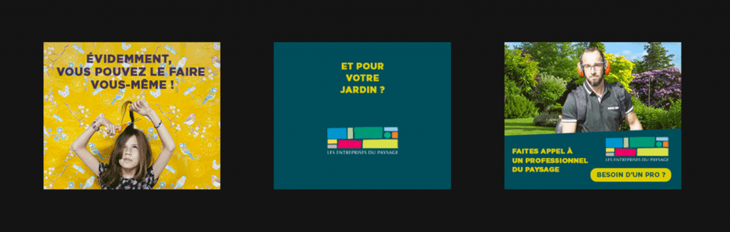 L’objectif de cette campagne de publicité est d’inciter à faire appel à un professionnel du paysage en renvoyant vers l’annuaire en ligne.