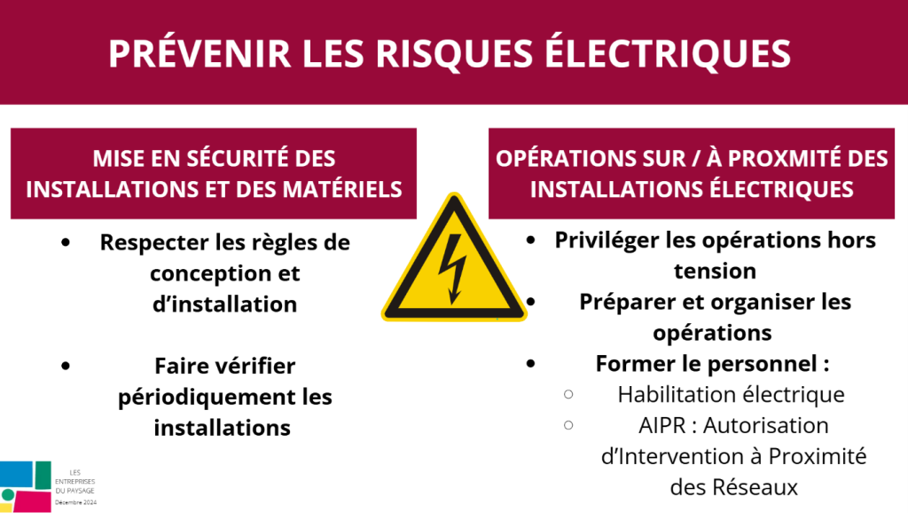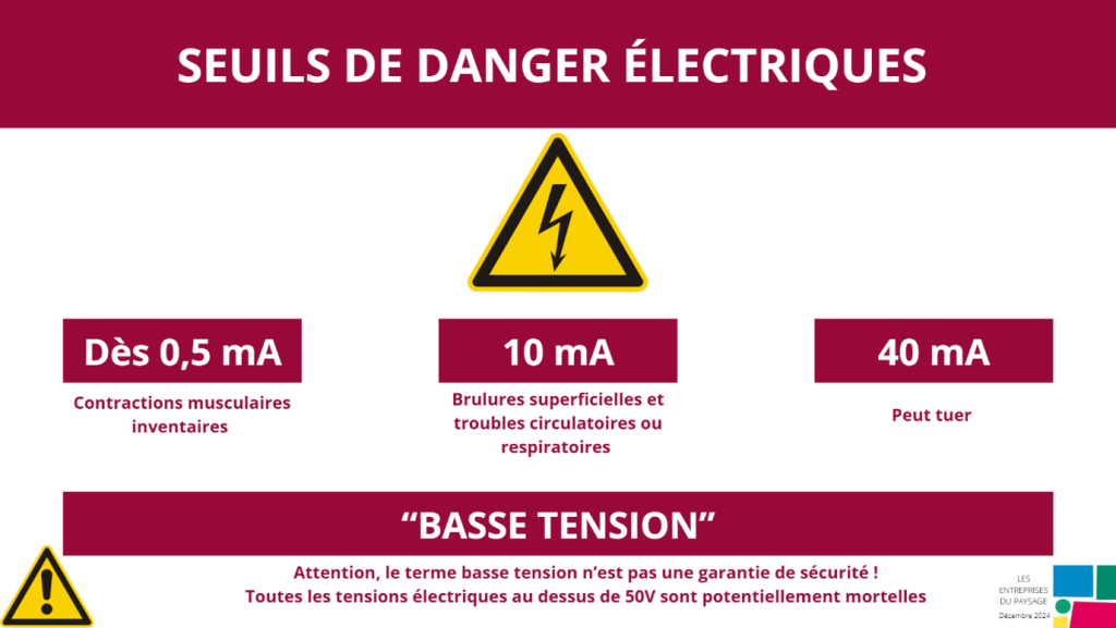 Lors de l’aménagement temporaire de chantiers paysagers (éclairage, alimentation électrique des outils), une mauvaise installation peut être à l’origine de courts-circuits ou d’accidents.