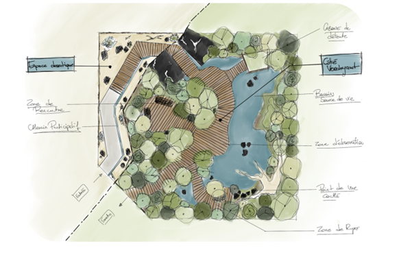 Croquis du projet « Graine d’espoir, fleur d’avenir » conçu par Eloïse Lorge pour la finale du Carré des Jardiniers 2025, sur le thème Le Jardin des Possibles