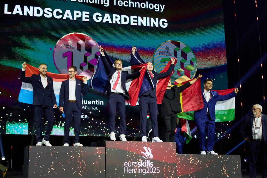 Paris, le 17 septembre 2025 – Lors de la 47e compétition européenne des métiers EuroSkills 2025, l’un des plus grands événements européens dédiés à l’enseignement professionnel et à l’excellence des compétences, plus de 600 participants venus de 33 pays européens se sont mesurés du 9 au 13 septembre à Herning, au Danemark. 38 métiers ont été mis en lumière, offrant aux jeunes compétiteurs l’occasion de démontrer leur savoir-faire, de partager leur passion avec des centaines de milliers de visiteurs, et peut-être de remporter un titre prestigieux dans leur discipline. Benjamin Bourreau et Quentin Gaboriau, originaires du centre de formation du Fresne en Pays de la Loire, ont porté haut les couleurs de la France face à 11 équipes européennes en lice dans la catégorie jardinier-paysagiste en décrochant la médaille d’Or.