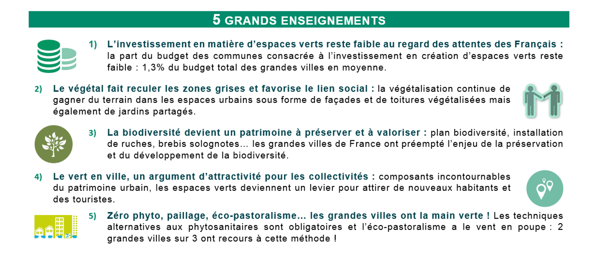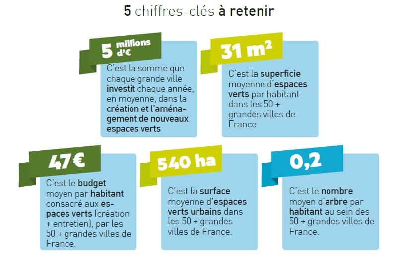 - 5 millions d’euros la somme que chaque grande ville investit chaque année en moyenne, dans la création de nouveaux espaces verts.