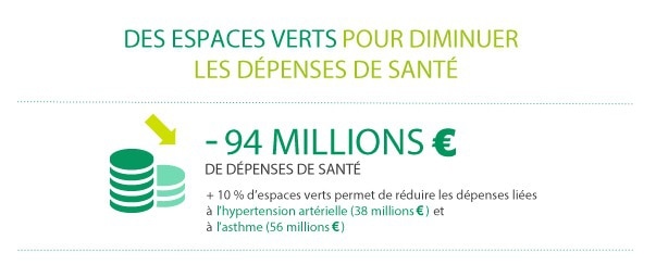 augmentation de 10 % des espaces verts en ville pourrait ainsi permettre d’économiser 94 millions d’euros en dépenses de santé chaque année.